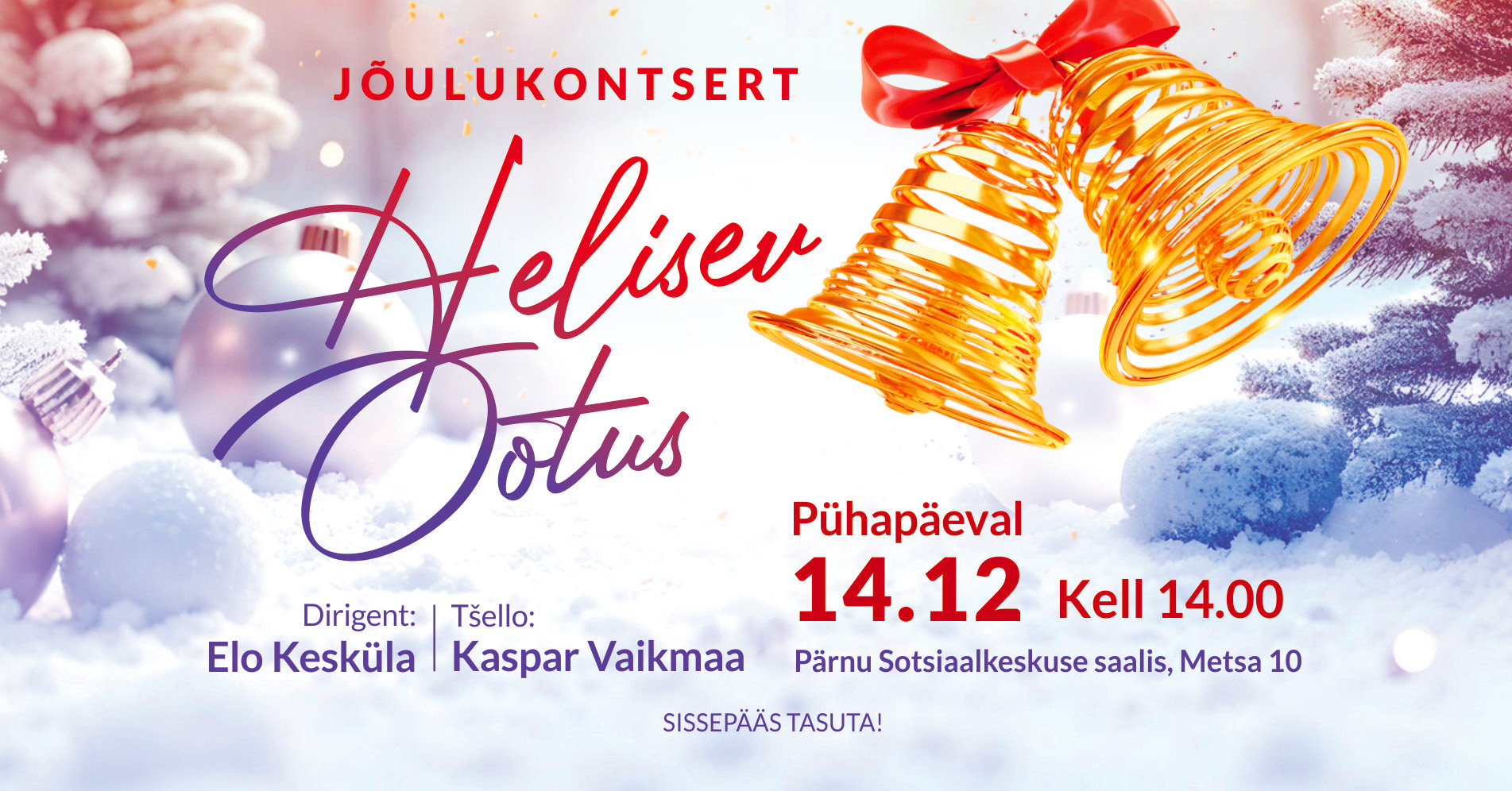Ppühapäeval, 14. detsembril, kell 14:00 on on võimalus tulla nautima kellade jõulukontserti “Helisev ootus”!